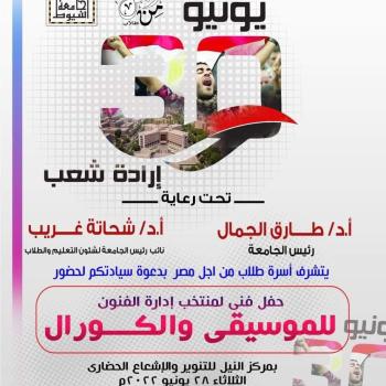 دعوة للمشاركة فى احتفالية جامعة اسيوط بثورة 30 يونيو .. " إرادة شعب "