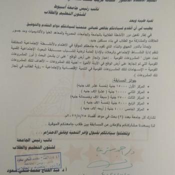 تنظم إدارة النشاط الإجتماعي والرحلات بالإدارة العامة لرعاية الشباب بجامعه عین شمس مسابقة البحوث الاجتماعية القمية تحت عنوان "المشروعات القومية"