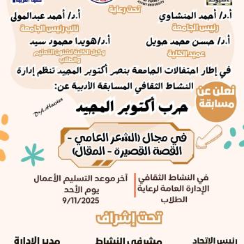 كلية التربية ... تعلن عن المسابقة الادبية عن حرب أكتوبر المجيد فى مجال ( الشعر العامي، القصة القصيرة، المقال )