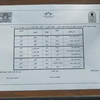 نتيجة المسابقة الأدبية عن حرب أكتوبر فى مجالات الشعر العامـى ـ القصة القصيرة ـ المقال - ادارة النشاط الثقافى بالإدارة العامة لرعاية الطلاب