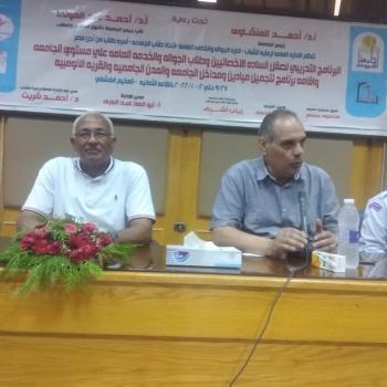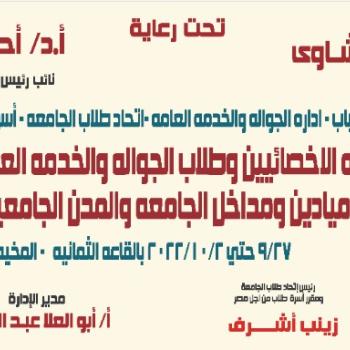 جامعة اسيوط وقطاع الادارة العامة لرعاية الشباب واتحاد طلاب الجامعة واسرة طلاب من اجل مصر يرحبون بحضور السيد الاستاذ الدكتور طايع عبد اللطيف مستشار وزير التعليم العالى والبحث العلمي للأنشطة الطلابية