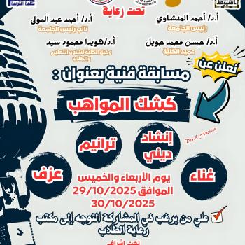 كلية التربية-الاعلان عن إقامة مسابقة اكتشاف المواهب الجديدة بعنوان " كشك المواهب"