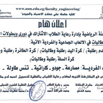 كلية الهندسة-تعلن عن الاشتراك في دوري وبطولات الجامعة طلبةوطالبات في الالعاب الفردية والجماعية