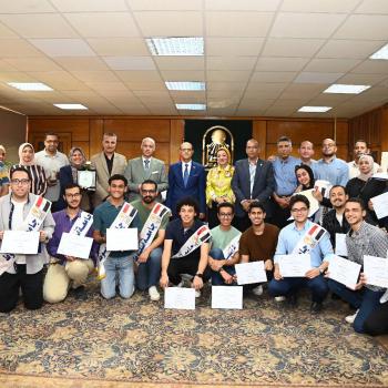 الأستاذ الدكتور /أحمد المنشاوي رئيس جامعة أسيوط يحتفي بطلاب الجامعة الفائزين في مهرجان "إبداع 13"