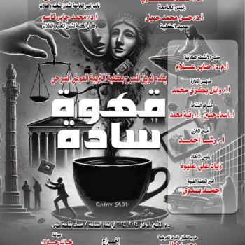 إدارة الفنون بالإدارة العامة لرعاية الطلاب .. دعوة من كلية التربية لحضور الطلاب والطالبات بالجامعة لعرض مسرحية بعنوان " قهوة سادة " بقاعة النيل للتنوير والإشعاع الثقافي الساعة ٧ مساءا يوم الإثنين الموافق ٢٤ فبراير ٢٠٢٥م