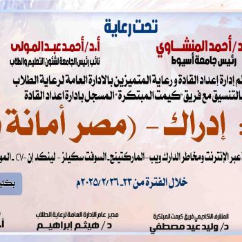إدارة إعداد القادة ورعاية المتميزين بالإدارة العامة لرعاية الطلاب بالتنسيق مع فريق كيمت المبتكرة بكلية التجارة .. دعوة لحضور الطلاب والطالبات لختام الدورة التدربية "ادراك _مصر أمانة بايدينا "حول المقامرة عبر الانترنت
