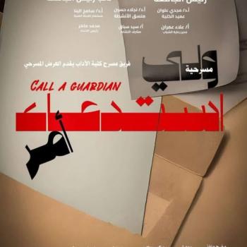 دعوة من كلية الآداب لطلاب وطالبات الجامعة لحضور العرض المسرحي لفريق الكلية بعنوان "استدعاء ولي أمر" إدارة الفنون