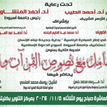 تكملة لفعليات سلسلة ندوات الدعوة الإسلامية التي تنظمها جامعة أسيوط بالتعاون مع الأزهر الشريف الندوة الثانية بعنوان " منهجية التعامل مع نصوص القرآن والسنة "