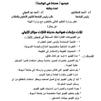 ادارة الفنون .. دعوة لمشاركة الطلاب في المسابقة لعمل الفيدوضمن مسابقة (صحتنا في كوكبنا )