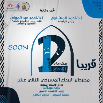 ادارة الفنون .. انتظرونا قريبٱ علي مسرح قاعة النيل للتنوير والأشعاع الثقافي بجامعة أسيوط مع مهرجان الإثارة والتشوق مهرجان الفن والسحر والجمال مهرجان الابداع المسرحي الثاني عشر