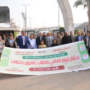 نظمت الادارة العامة لرعاية الشباب - مركز رعاية الطلاب ذوى الاعاقة .. رئيس جامعة اسيوط يرفع شعار قادرون باختلاف فى مسيرة حاشدة احتفالا باليوم العالمى لذوى الهمم