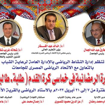 إدارة النشاط الرياضى .. جامعة أسيوط تعلن انطلاق فعاليات الدورة الرمضانية في خماسي كرة القدم طلبة _طالبات و الممتدة حتى 21 أبريل الجاري