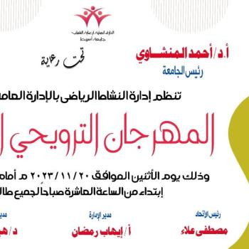 دعوة للمشاركة اليوم الساعة العاشرة صباحا أمام الإدارة العامة لرعاية الشباب .. تنظم ادارة النشاط الرياضي " المهرجان الترويحي الاول للطالبات "