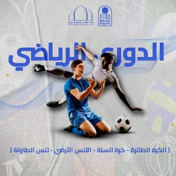 اتحاد طلاب جامعة اسيوط ...انطلاقا من الدور الهام الذي تلعبه اللجنة الرياضية العليا، نعلن عن إقامة دوري رياضي متنوع في مختلف المجالات الرياضية، و يشمل كرة القدم، كرة السلة، التنس الأرضي، تنس الطاولة