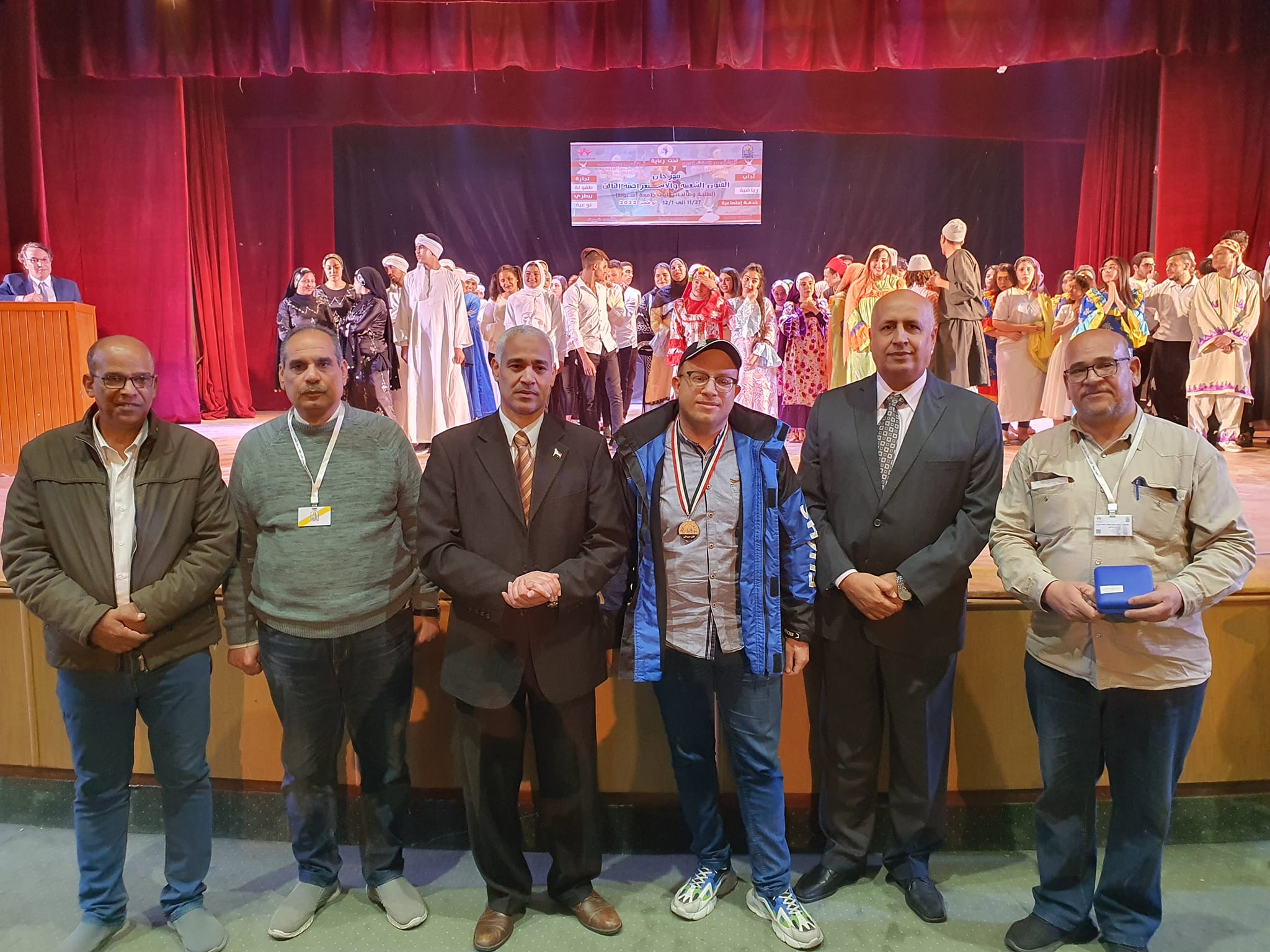 نظمت الإدارة العامة لرعاية الشباب - إدارة الفنون - قسم الفنون الشعبية والاستعراضية ... حفل ختام مهرجان الفنون الشعبية والاستعراضية الثالث للطلبة والطالبات علي مستوي كليات الجامعة .