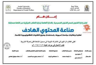كلية طب الاسنان- الاعلان عن مسابقة صناعة المحتوى الهادف التى تنظمها إدارة الفنون المسرحية