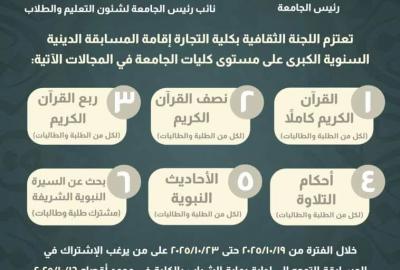 كلية التجارة ... تعتزم اللجنة الثقافية بكلية التجارة إقامة المسابقة الدينية السنوية الكبرى على مستوى كليات الجامعة