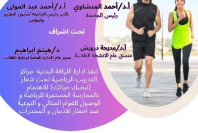 دعوة لمشاركة الطلاب والطالبات بكليات الجامعة المختلفة في مراكز التدريب الرياضية تحت شعار " نبضك حياتك " - إدارة اللياقة البدنية بالإدارة العامة لرعاية الطلاب