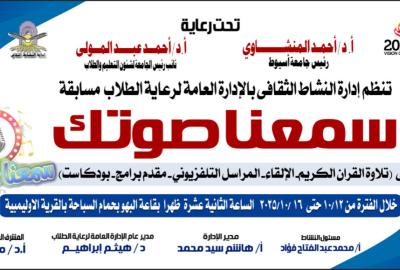 إعلان عن مسابقة "سمعنا صوتك" - إدارة النشاط الثقافى بالإدارة العامة لرعاية الطلاب