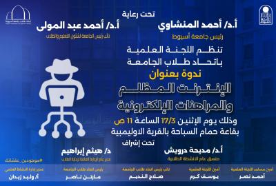 اللجنة العلمية باتحاد طلاب الجامعة بتنظم ندوة بعنوان " الإنترنت المظلم والمراهنات الإلكترونية "يوم الاثنين 17/3 الساعة *11 صباحًا* بقاعة *حمام السباحة بالقرية الأولمبية