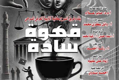 إدارة الفنون بالإدارة العامة لرعاية الطلاب .. دعوة من كلية التربية لحضور الطلاب والطالبات بالجامعة لعرض مسرحية بعنوان " قهوة سادة " بقاعة النيل للتنوير والإشعاع الثقافي الساعة ٧ مساءا يوم الإثنين الموافق ٢٤ فبراير ٢٠٢٥م