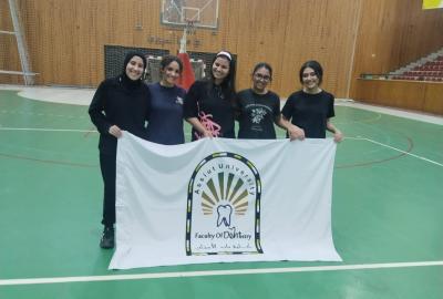 كلية طب الاسنان-فوز فريق الكلية علي المركز الثاني في دوري كرة السلة طالبات على مستوي الجامعة