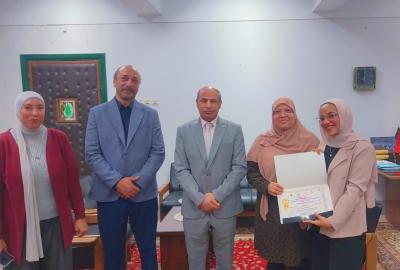 كلية التربية-حصول الطالبة آيات بدوى بكلية التربية على المركز الخامس على مستوى الجامعة فى مسابقة الطالب والطالبة المثالية