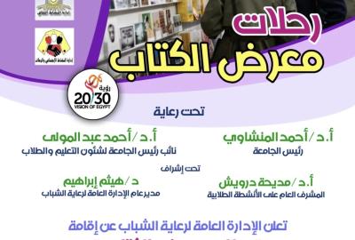 إدارة النشاط الاجتماعي والرحلات وإدارة النشاط الثقافى بالإدارة العامة لرعاية الشباب .. نظمتا سلسلة زيارات مجانية لطلاب الجامعة لمعرض الكتاب ألـ 55 ، حيث قسمت الزيارات الى 4 أفواج بحوالي عدد 400 طالب وطالبة