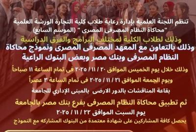 كلية التجارة ... تنظم اللجنة العلمية بإدارة رعاية طلاب كلية التجارة الورشة العلمية "محاكاة النظام المصرفي المصري" (الموسم السابع)