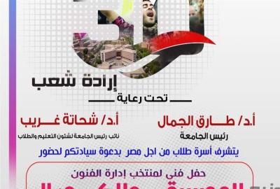 دعوة للمشاركة فى احتفالية جامعة اسيوط بثورة 30 يونيو .. " إرادة شعب "