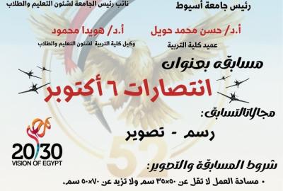 كلية التربية-تعلن الإدارة العامة لرعاية الطلاب عن إقامة مسابقه الفنون التشكيلة لانتصارات أكتوبر