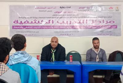 تنظم إدارة الجوالة والخدمة العامة بالإدارة العامة لرعاية الشباب بالتعاون مع الإدارة العامة للجامعات بوزارة الشباب والرياضة مراكز التدريب الكشفية وذلك بمركز التدريب الكشفي بالجامعة خلال شهر نوفمبر - ديسمبر - يناير - فبراير - مارس ٢٠٢٣/٢٠٢٢م