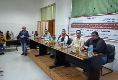 ادارة الاسر الطلابية بالادارة العامة لرعاية الشباب المركزية ... أولي جلسات الدورة التدريبية للمبادرات الطلابية حول كيفية التخطيط والاعداد والتنفيذ للمبادرات الطلابية لطلاب جامعة أسيوط