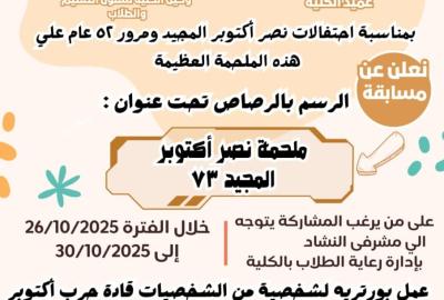 كلية التربية- تعلن عن مسابقة الرسم بالرصاص تحت عنوان ملحمة نصر اكتوبر المجيد 73