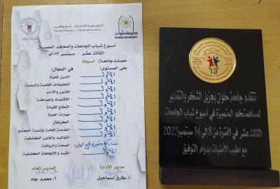 جامعة أسيوط تحصد عدداً من الجوائز في منافسات أسبوع شباب الجامعات المصرية والمعاهد العليا فى دورته الثالثة عشرة بحلوان
