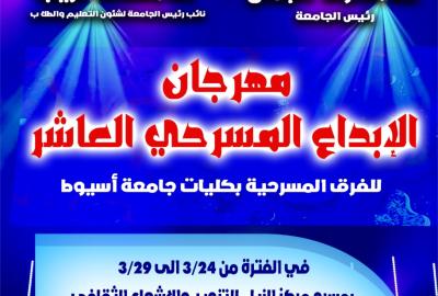 إدارة الفنون ... تعلن عن أجندة عروض مهرجان الإبداع المسرحي العاشر للفرق المسرحية بكليات جامعة اسيوط