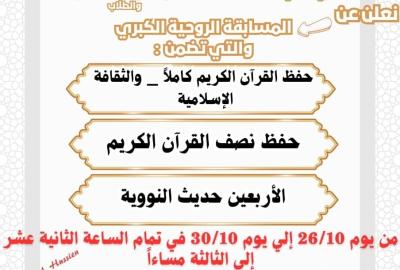 كلية التربية-الاعلان عن المسابقة الروحية الكبرى التي تنظمها الإدارة العامة لرعاية الطلاب للنشاط الثقافى