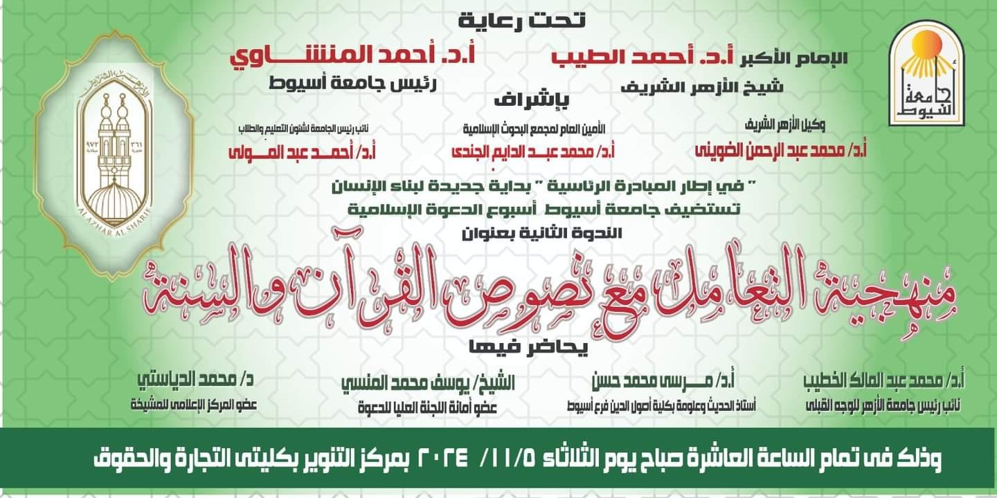 تكملة لفعليات سلسلة ندوات الدعوة الإسلامية التي تنظمها جامعة أسيوط بالتعاون مع الأزهر الشريف