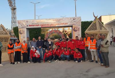 Der Präsident der Assiut Universität nimmt mit den Studenten der Universitätsstadt an einem Ramadan-Iftar-Tisch teil, der von der Familie "Studenten für Ägypten" organisiert wird
