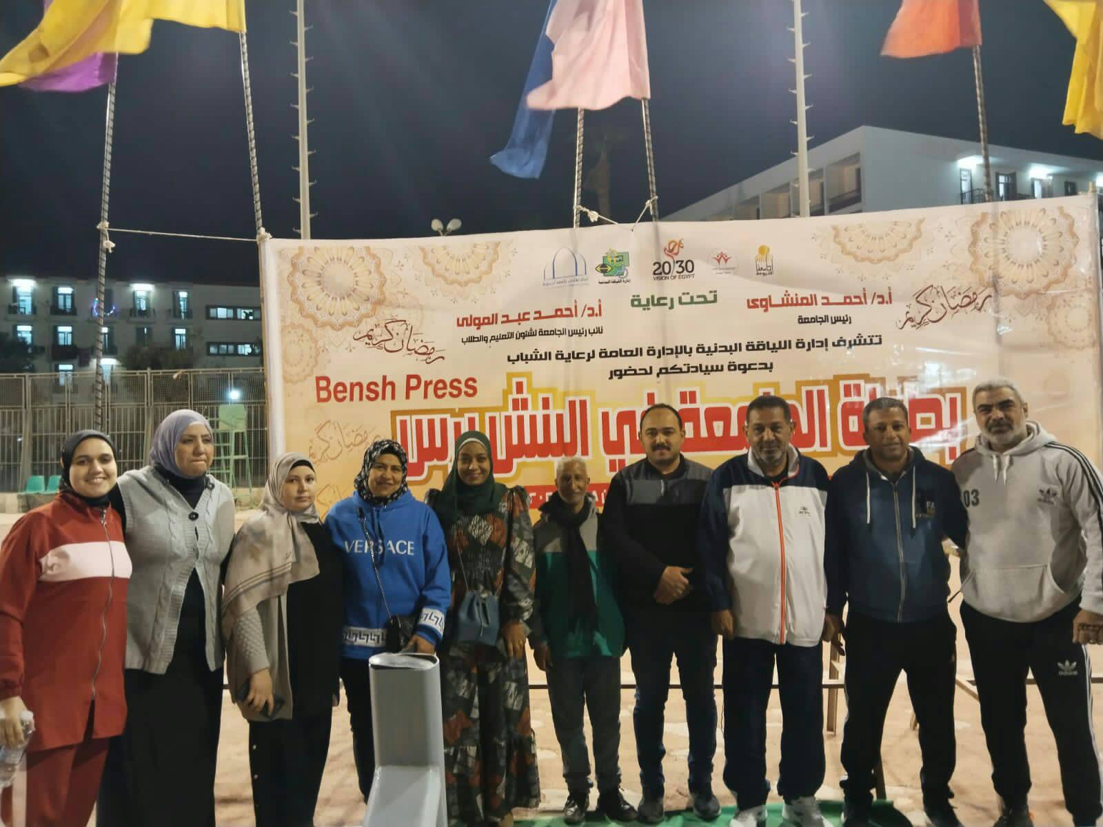 The activities of the second day: “Univer00sity Bench Press Championship” held in the open playgrounds for students