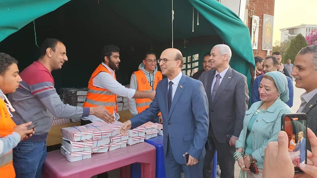 Assiut University President participates with the university housing students Ramadan Iftar table organized by the Students for Egypt family